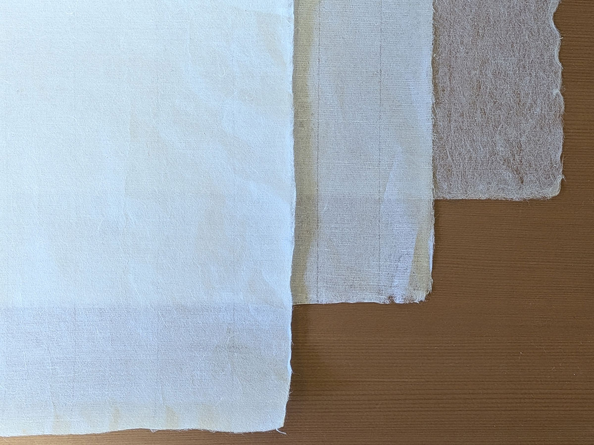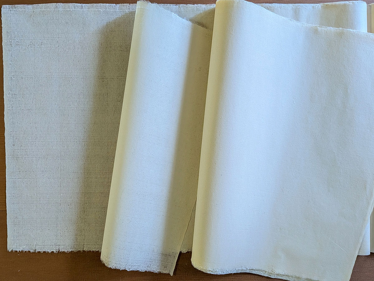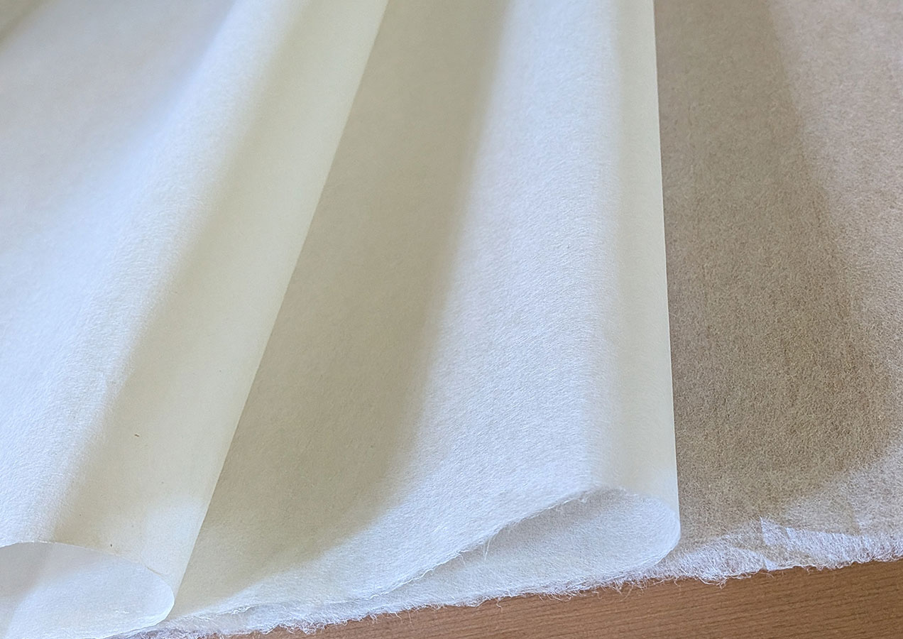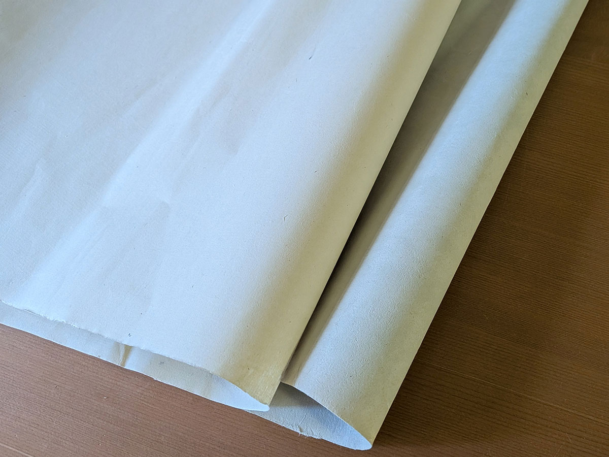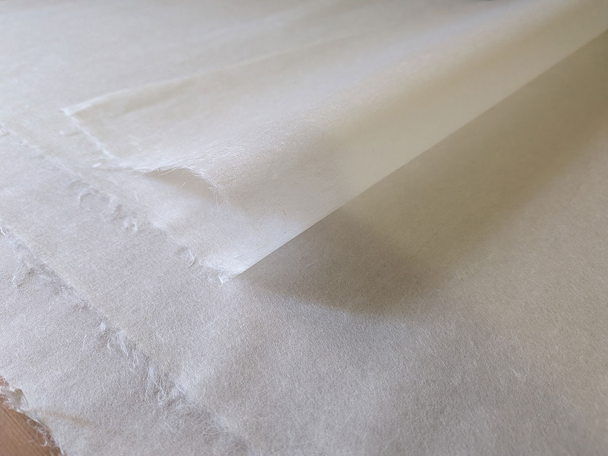 岐阜県美濃地方で伝統的に漉かれる和紙。柔らかく繊細でありながら強靭で耐久性にも優れています。「本美濃紙」は伝統的な楮原料と製法を継承する手漉き紙として、国の重要無形文化財・ユネスコ無形文化遺産に登録されています。表具では裏打ち紙の基準とされる代表的な和紙です。